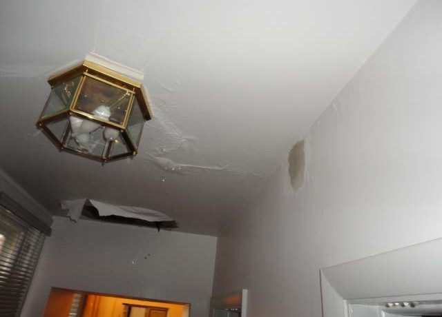 The flooding resulted in an electrical panel box that was soaked, and 6 inches of water in the basement kitchen. The ceiling between the first and second floors had also collapsed.